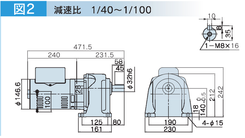 富士変速機ギヤードモータ  VX-Sシリーズ(屋内仕様 脚取付) VX08-045S